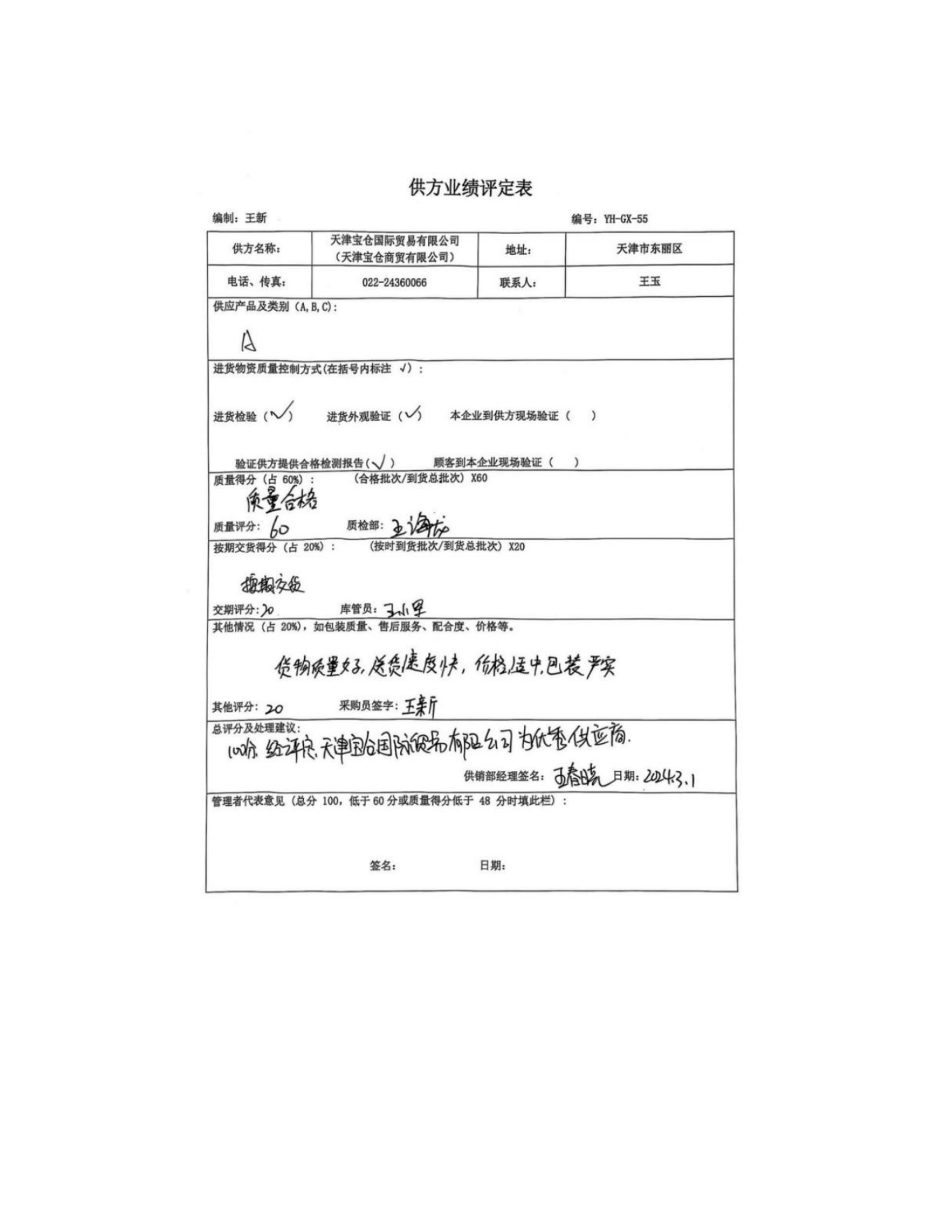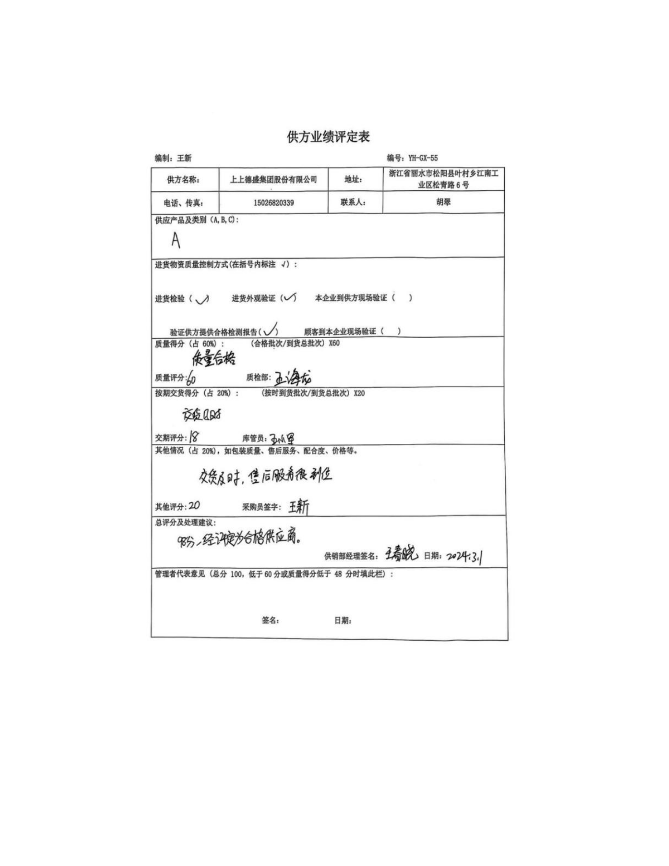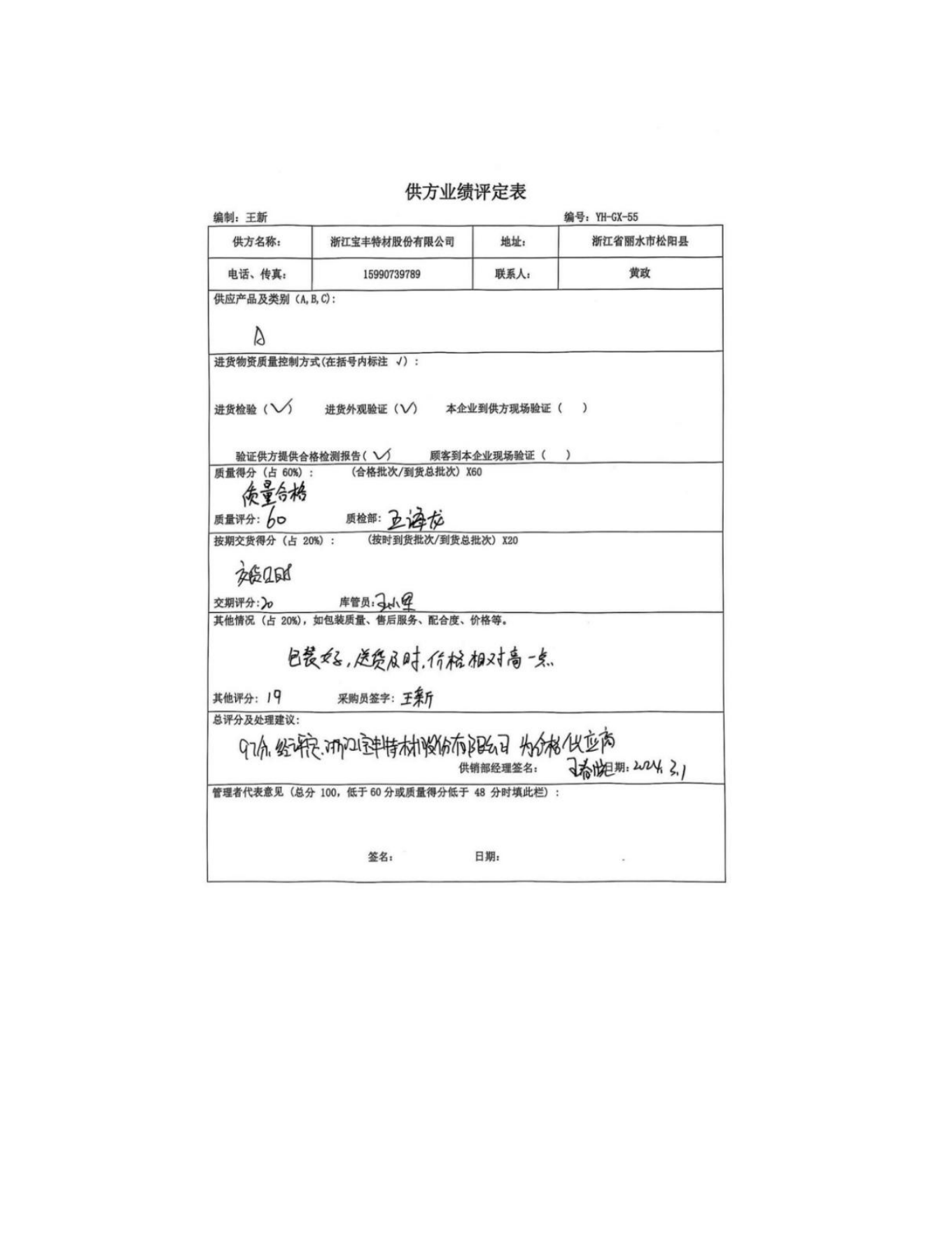 供方評(píng)價(jià)記錄