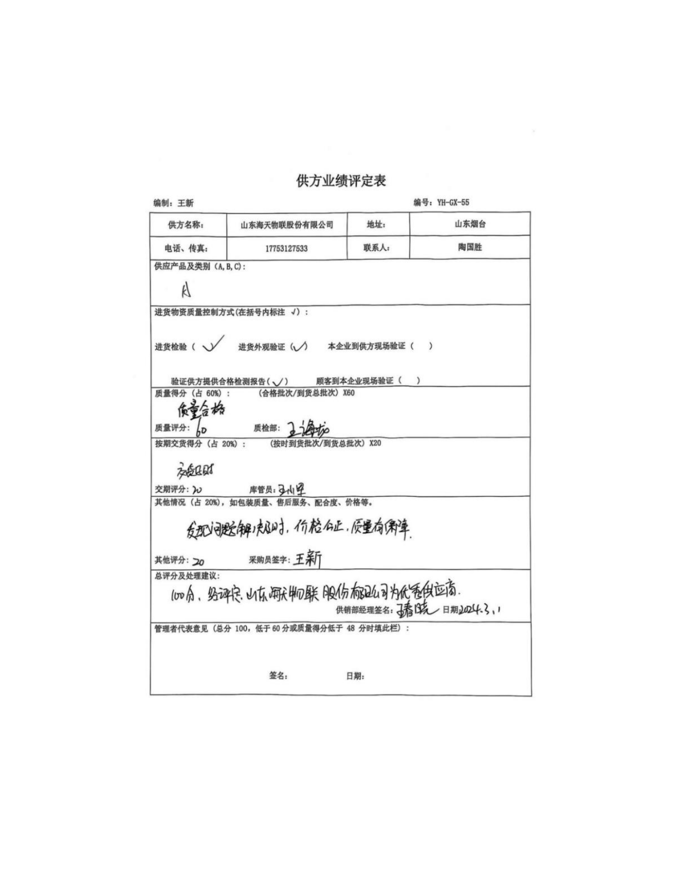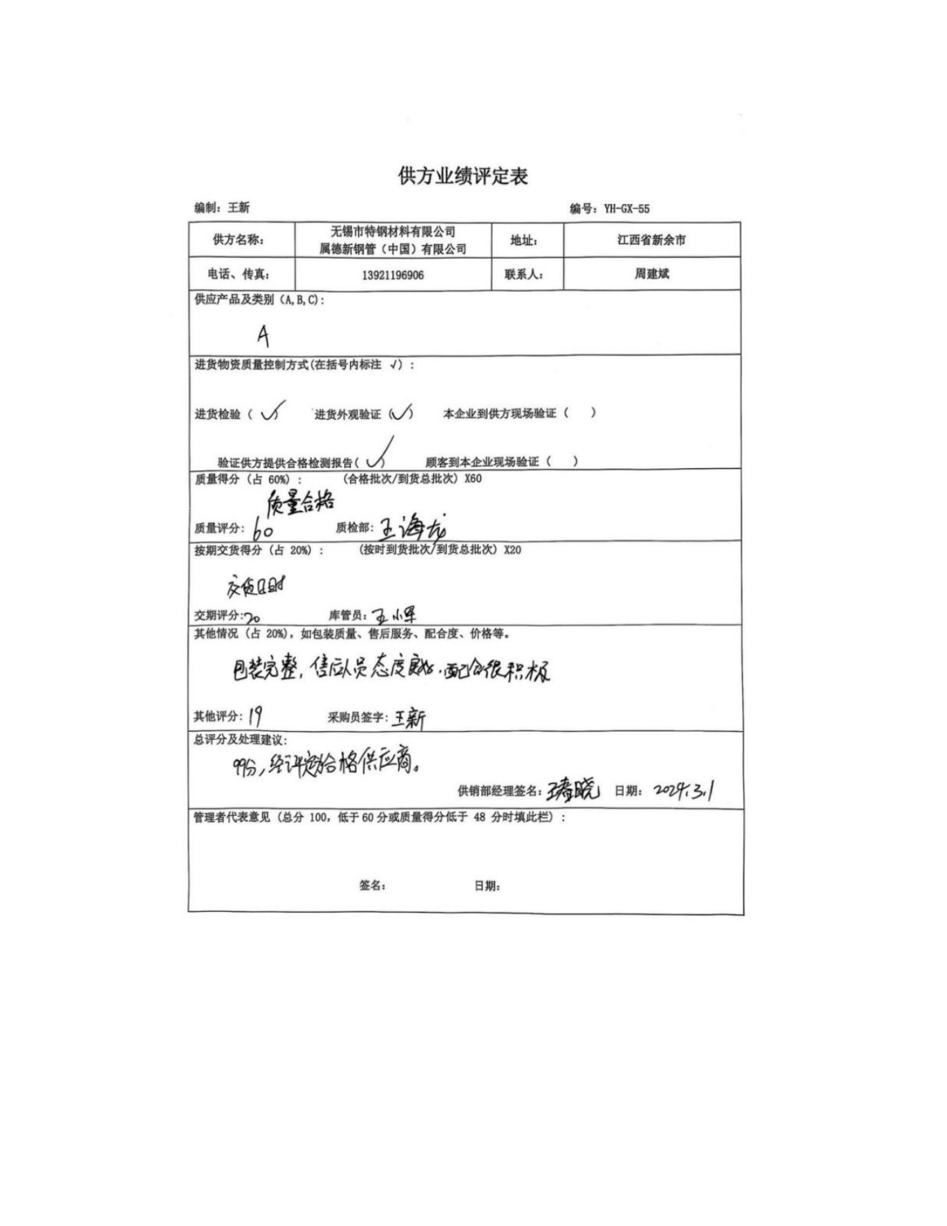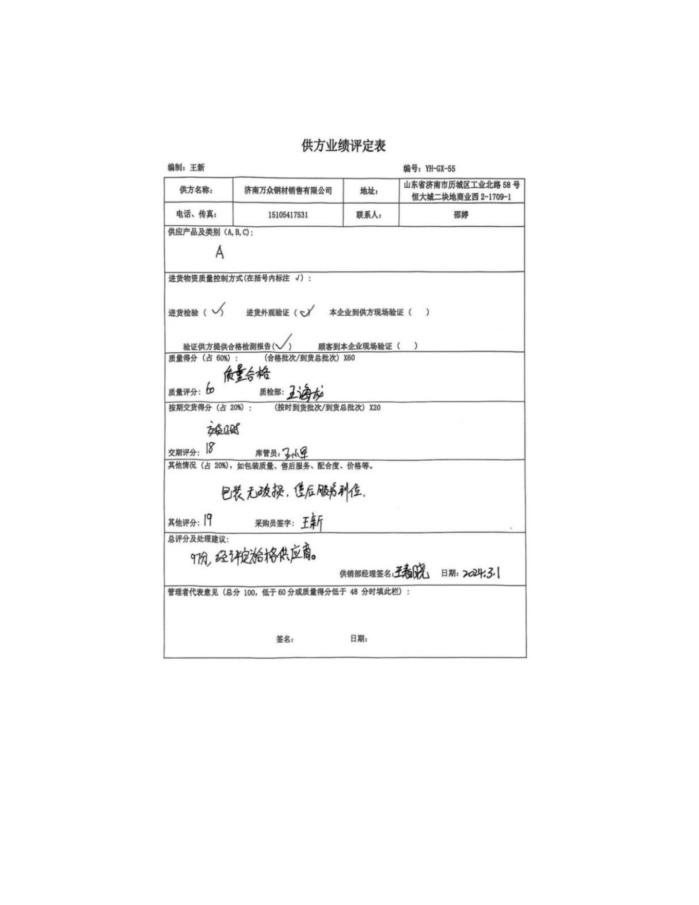 供方評(píng)價(jià)記錄