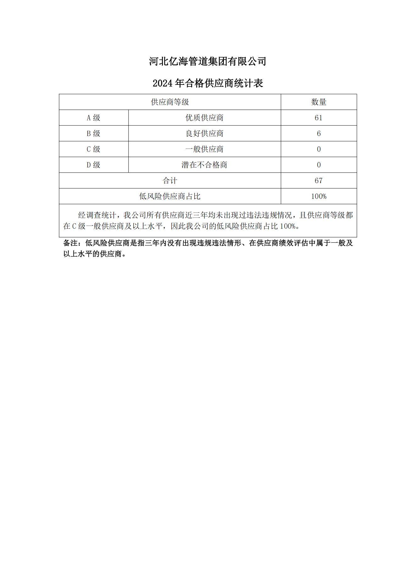 億海公司2024年合格供應(yīng)商統(tǒng)計表
